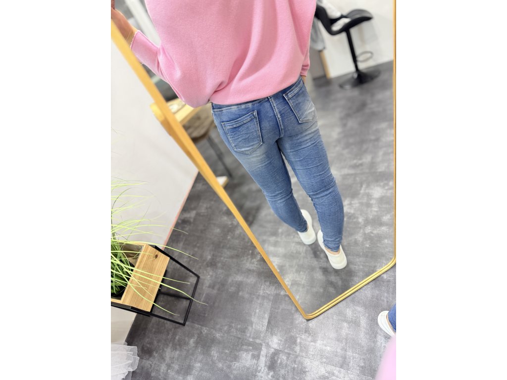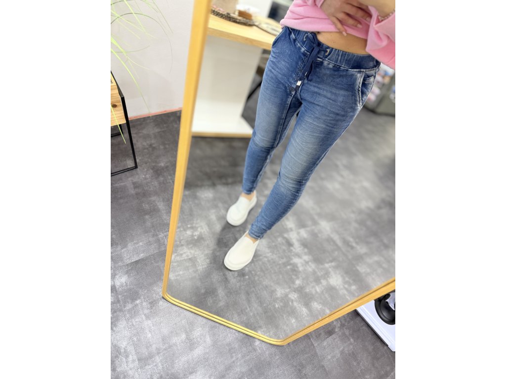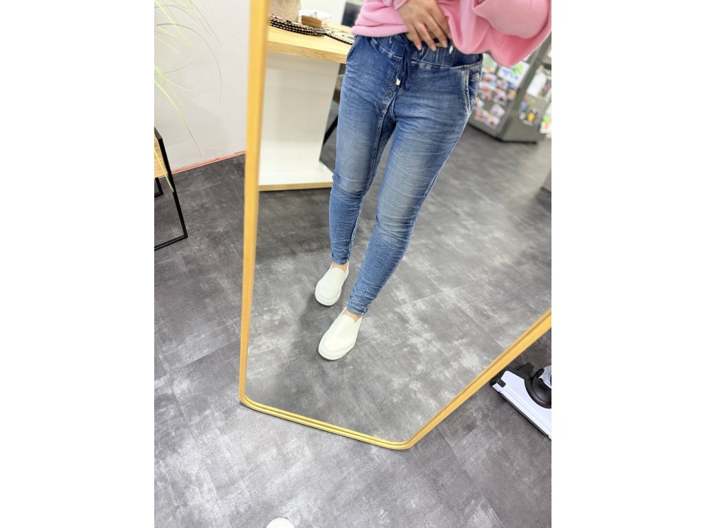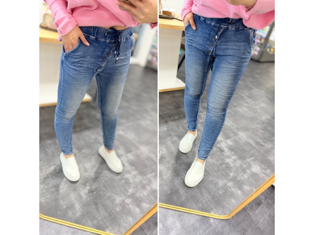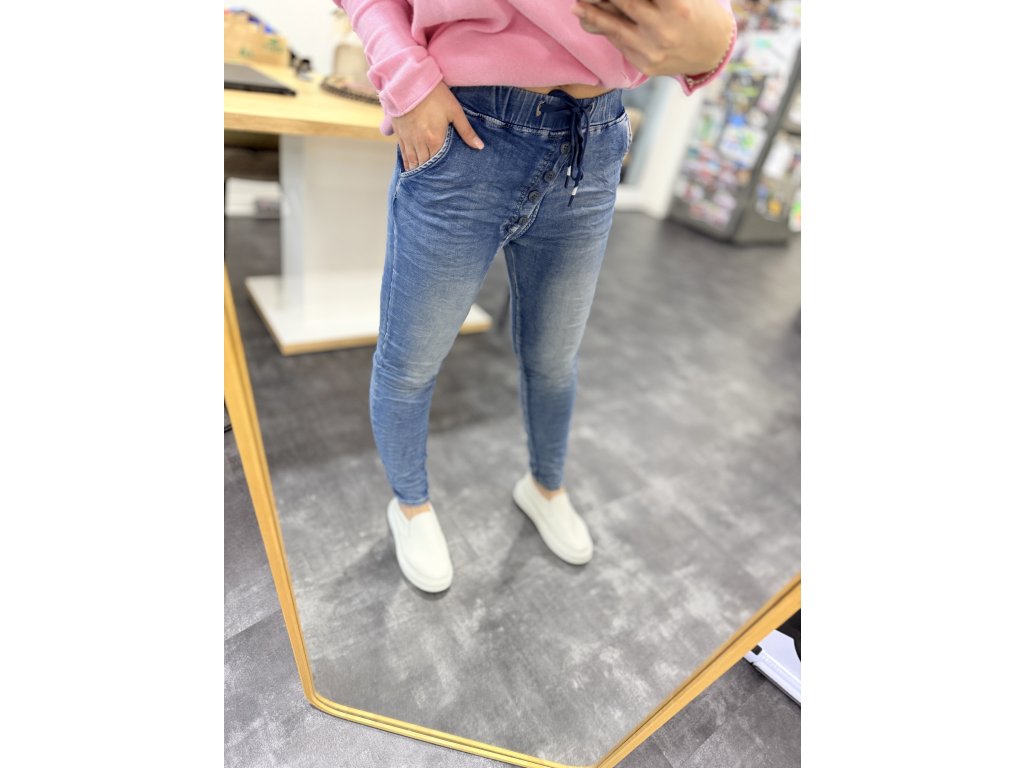 Baggy jeans v pase na gumu a tkaničku, knoflíky jsou na ozdobu. Krásná vyšisovaná barva.