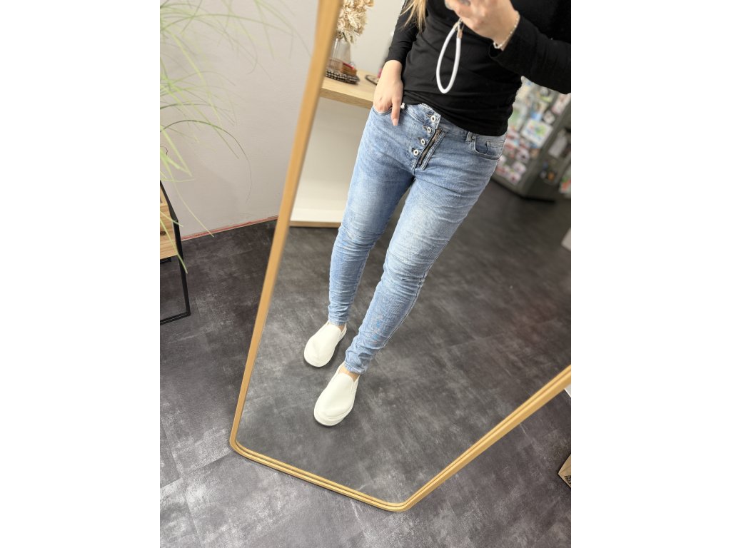 Netradiční, ale krásné džíny na zip a knoflíky.