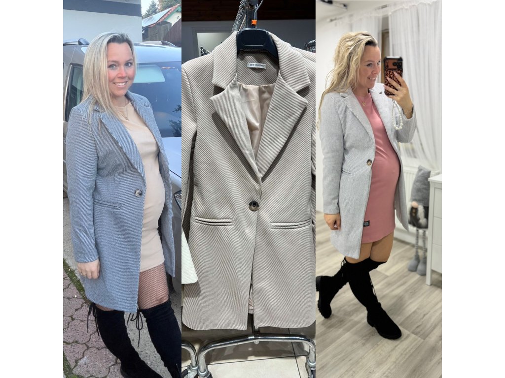 Stylový kabát s podšívkou a falešnými kapsami na jeden knoflík