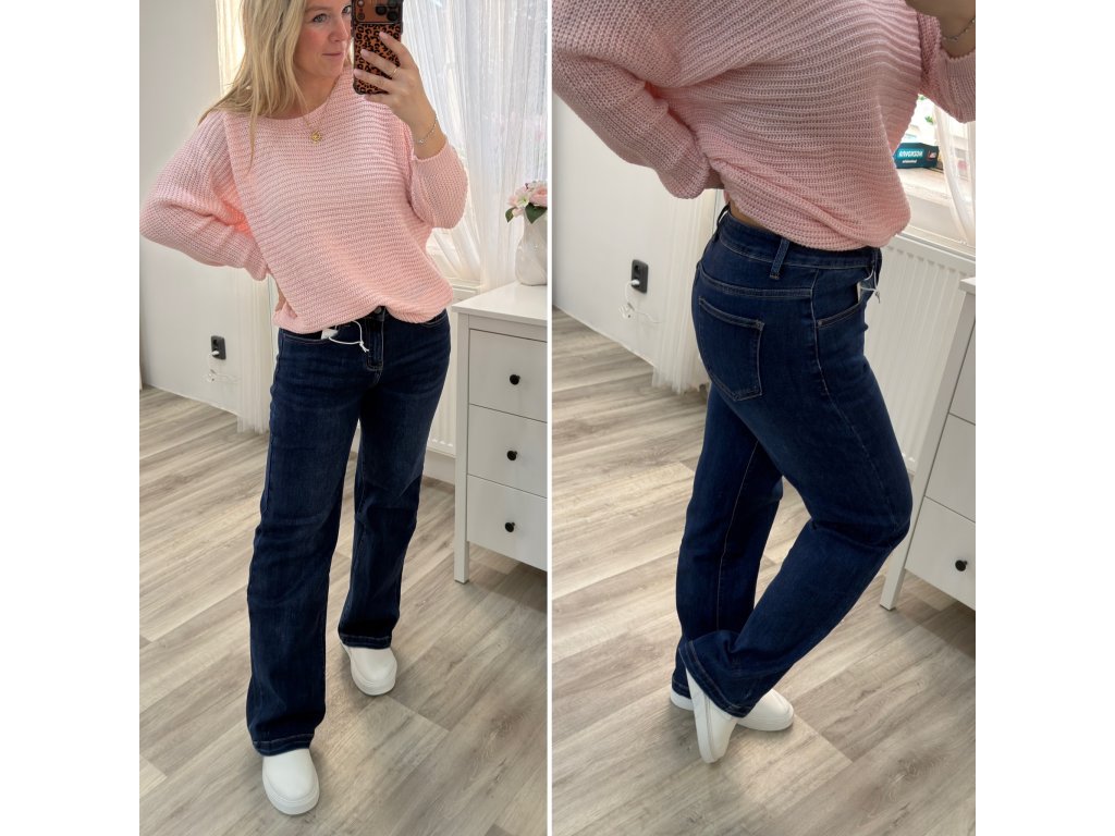 Elegantní široké džíny s vysokým pasem, které vynikají čistým střihem a přirozenou siluetou.