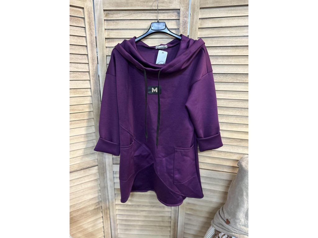 Pohodlný střih s decentním křížením krásně zvýrazní postavu. Volnější límec nebo také kapuce lze stáhnout tkaničkou.