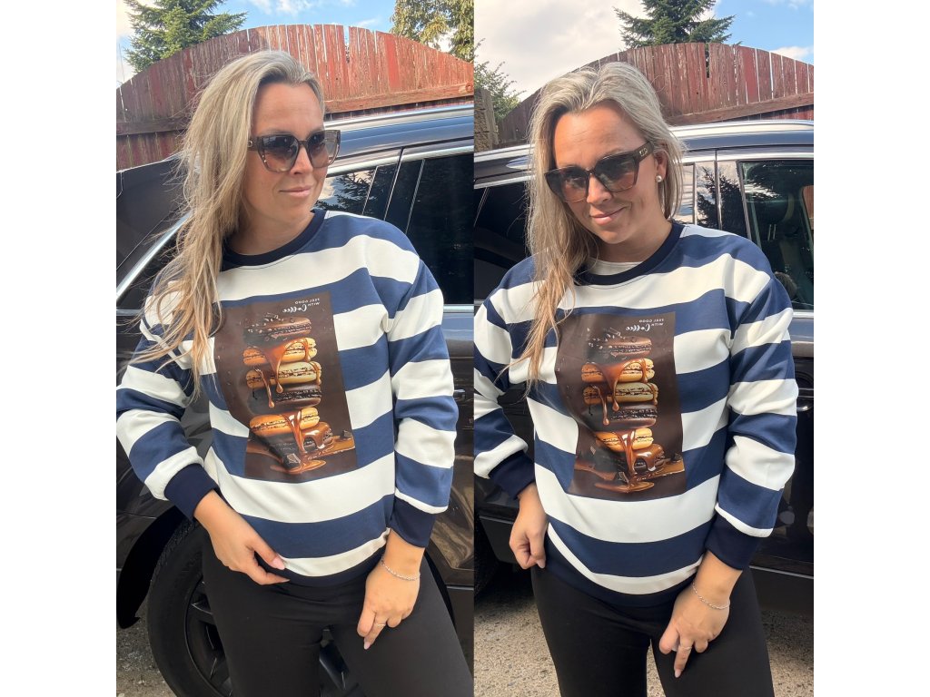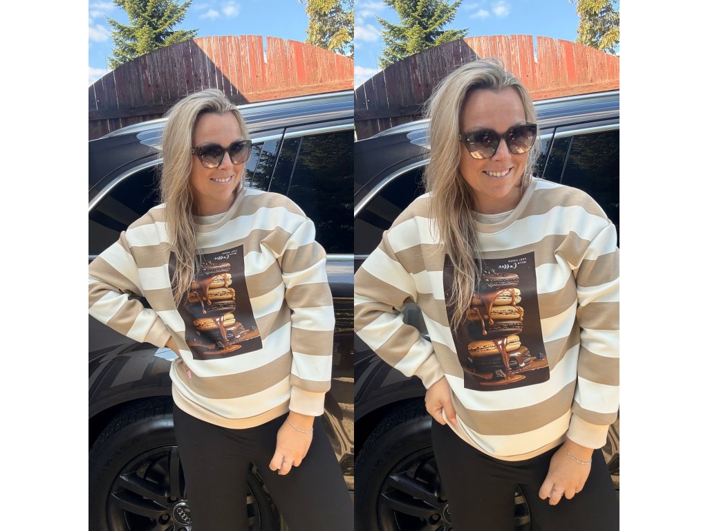 Pohodlná mikina s výraznými pruhy, která svádí na první pohled - hravý design, pohodlí pro každý den.