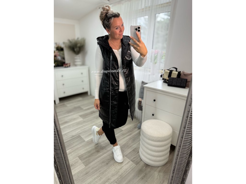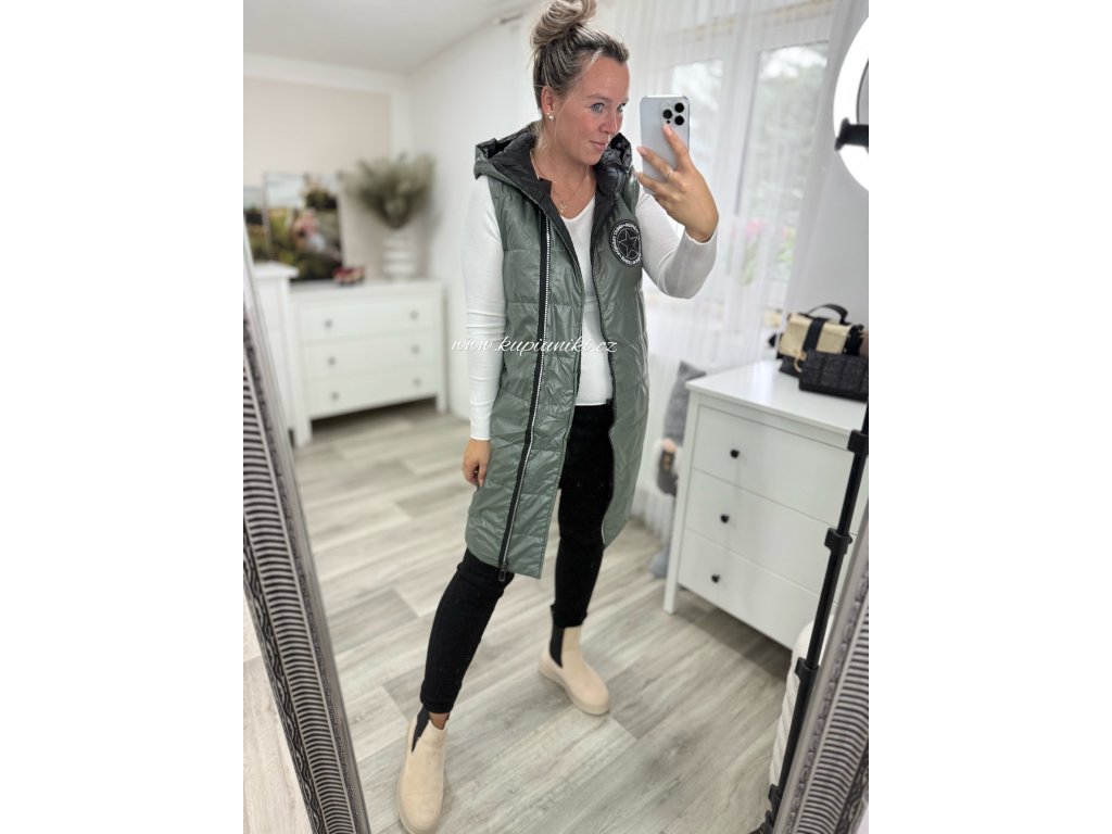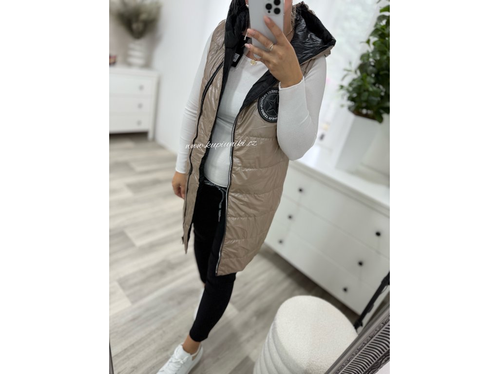 Lehká prošívaná vesta s asymetrickým dvoucestným zipem.