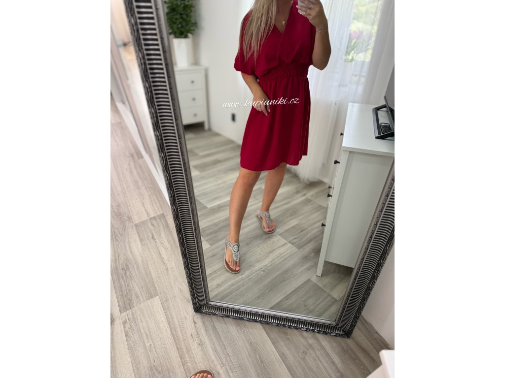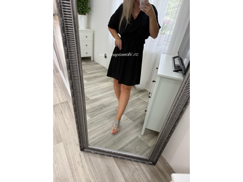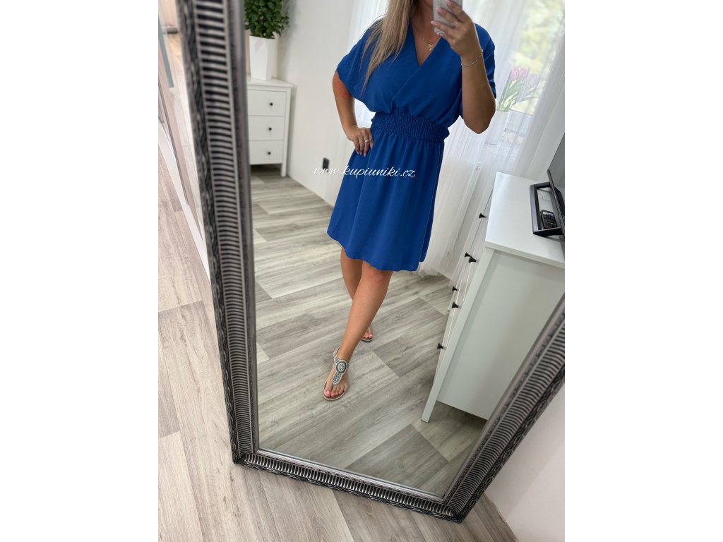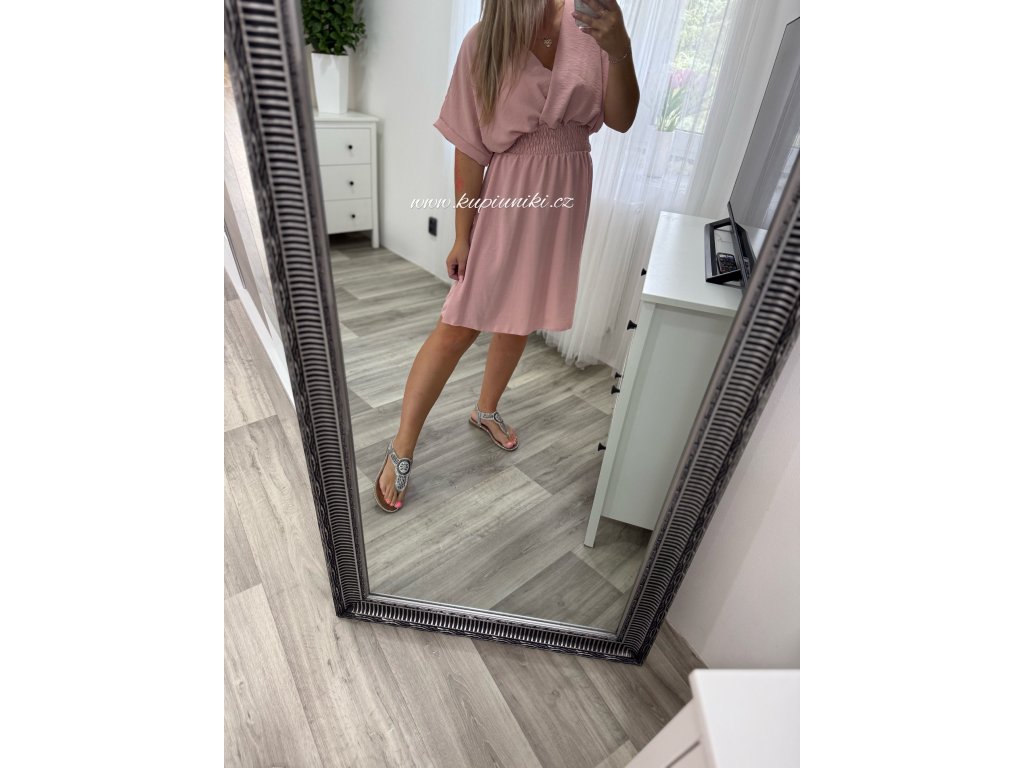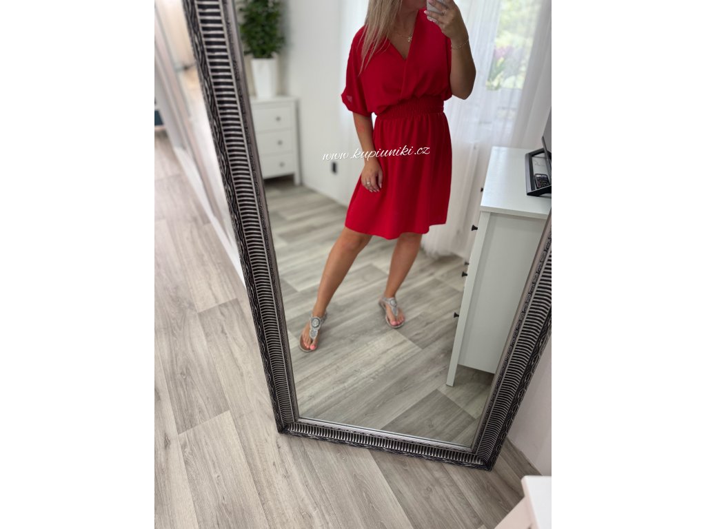 Pohodlné šaty s překládaným výstřihem, volnými rukávy a pružným pasem krásně kopírují siluetu.