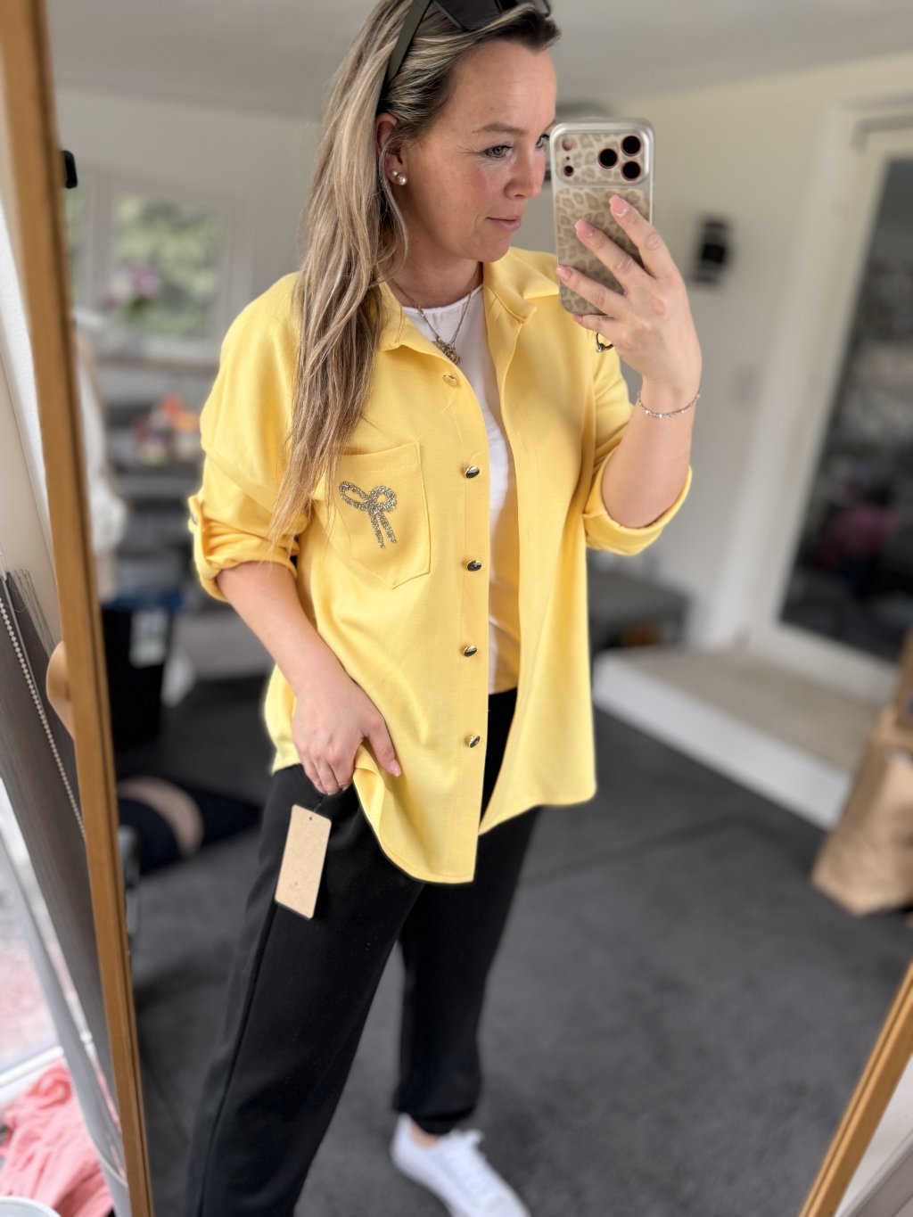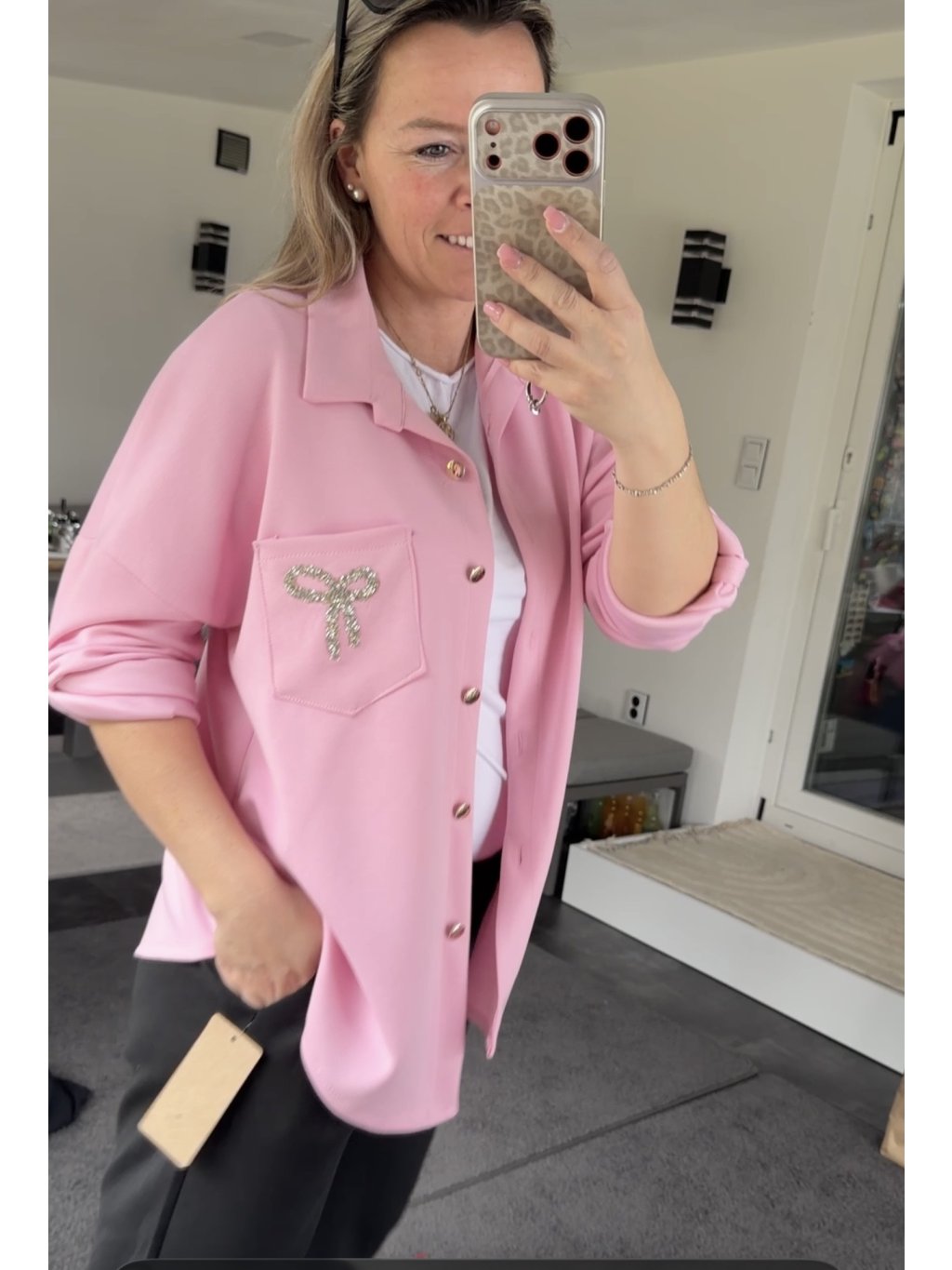 "MÁSLOVÝ" košilový top s krystalovou mašlí na kapse.