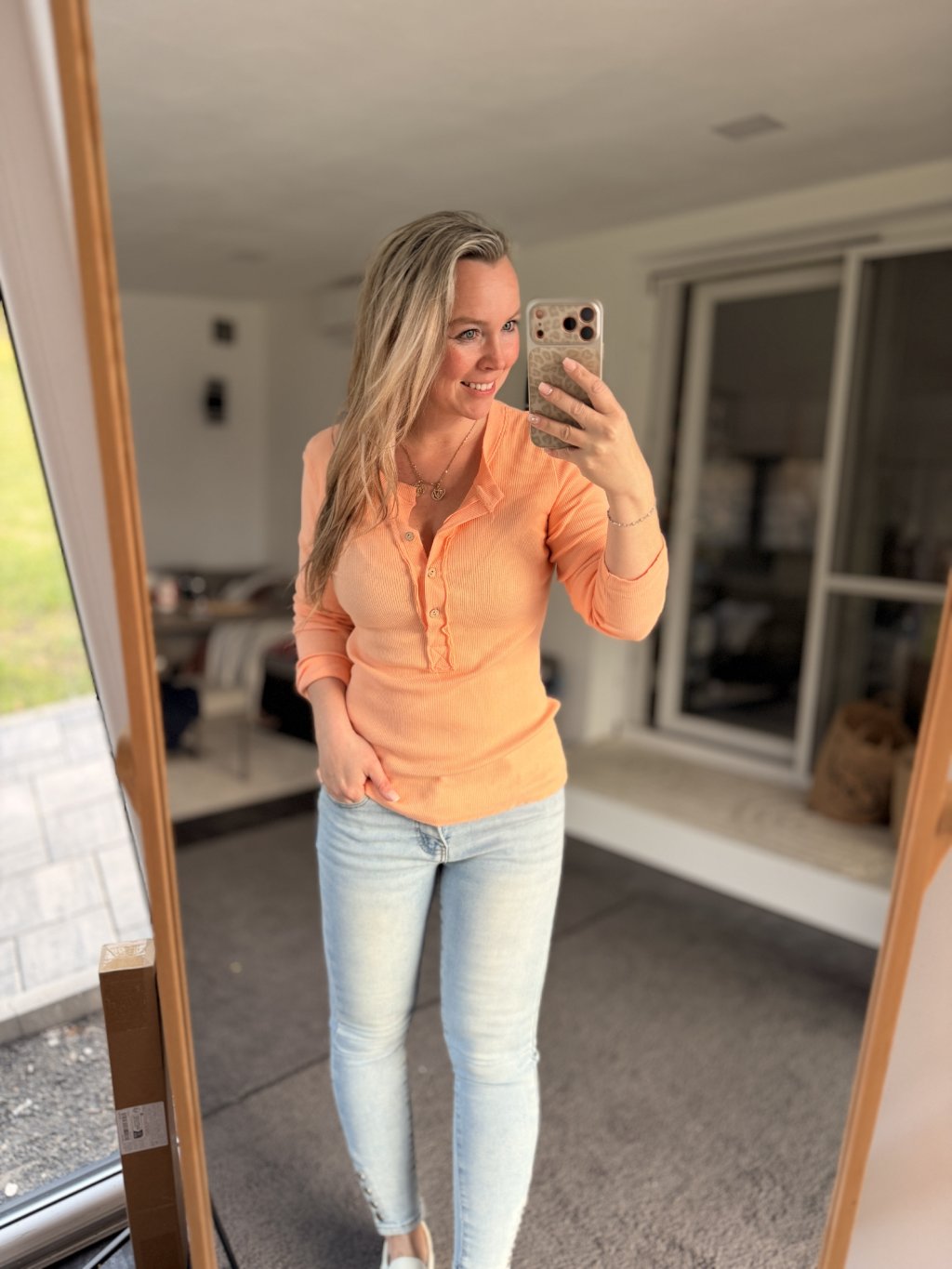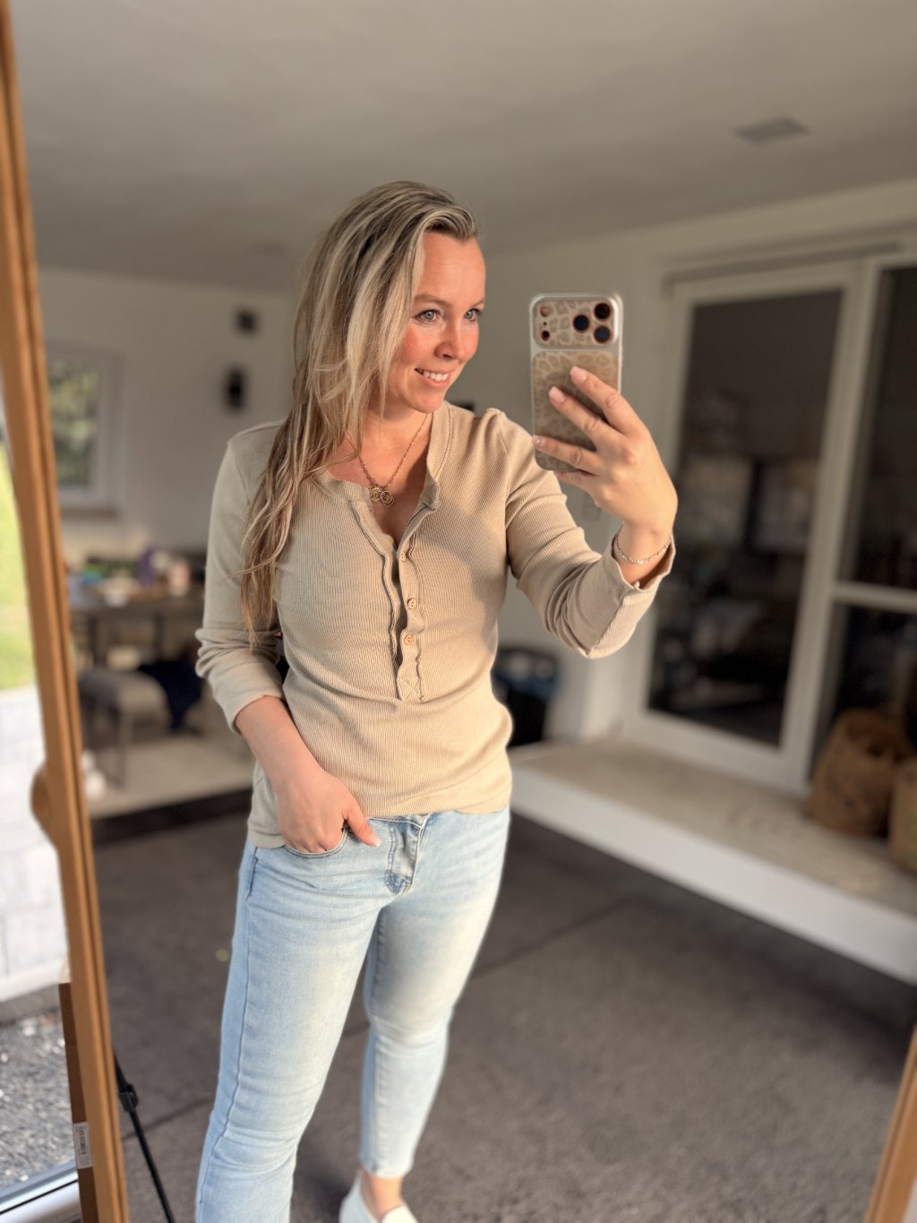 Žebrované triko s dlouhým rukávem a s knoflíky.