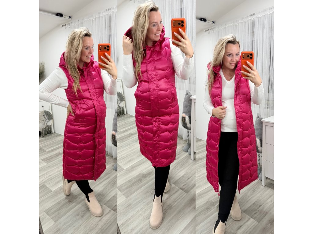 Krásná dlouhá vesta, která se hodí jak na podzim, tak i na zimu.